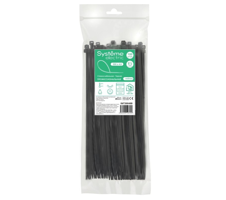 MULTISET Стяжка кабельная нейлоновая 300х4.8 ЧЁРНАЯ (100шт) в пакете с замком ЗИП-ЛОК