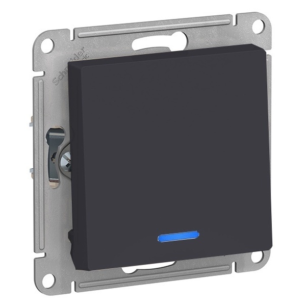 ATLASDESIGN 1-клавишный ПЕРЕКЛЮЧАТЕЛЬ с подсветкой, сх.6а, 10АХ, мех., быстрозажим. клем., КАРБОН