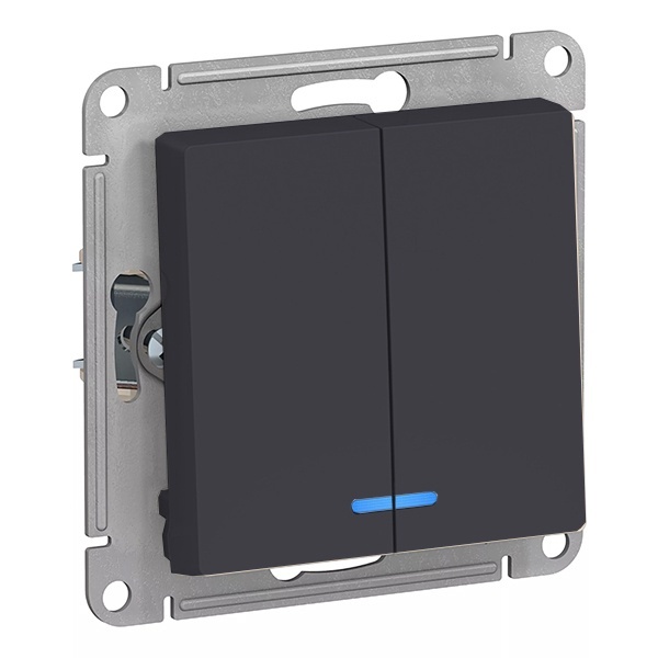 ATLASDESIGN 2-клавишный ВЫКЛЮЧАТЕЛЬ с подсветкой, сх.5а, 10АХ, мех., быстрозажим. клем., КАРБОН