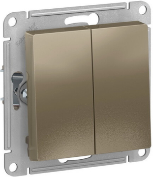 ATLASDESIGN 2-клавишный ПЕРЕКЛЮЧАТЕЛЬ, сх.6+6, 10АХ, мех., быстрозажим. клем., ШАМПАНЬ