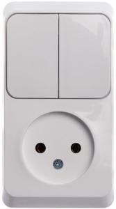 ЭТЮД О/У БЛОК: РОЗЕТКА без заземления + ВЫКЛЮЧАТЕЛЬ 2-клав., БЕЛЫЙ