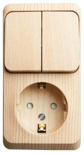 ЭТЮД О/У БЛОК: РОЗЕТКА с заземл. со шт. + ВЫКЛЮЧАТЕЛЬ 2-клав., СОСНА