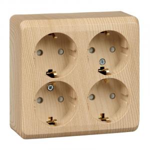 ЭТЮД О/У РОЗЕТКА 4-местная с заземлением со шторками, 16А, 250В, СОСНА