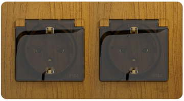 GLOSSA РОЗЕТКА двойная с заземлением со шторками с прозрачной крышкой,16А, IP44, в сборе, ДУБ