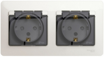 GLOSSA РОЗЕТКА двойная с заземлением со шторками с прозрачной крышкой,16А, IP44, в сборе, ПЕРЛАМУТР