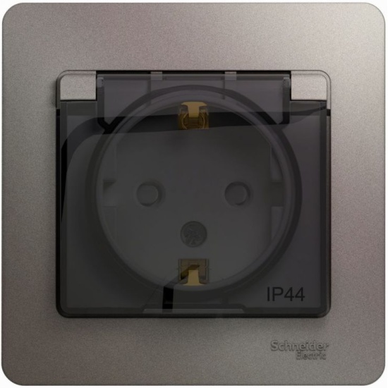 GLOSSA РОЗЕТКА с заземлением со шторками с прозрачной крышкой, 16А, IP44, в сборе, ПЛАТИНА
