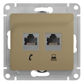ГЛОССА РОЗЕТКА двойная RJ11+RJ45, кат.5Е, механизм, ТИТАН