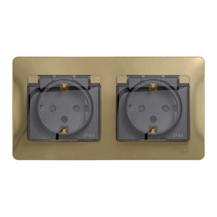 GLOSSA РОЗЕТКА двойная с заземлением со шторками с прозрачной крышкой,16А, IP44, в сборе, ТИТАН