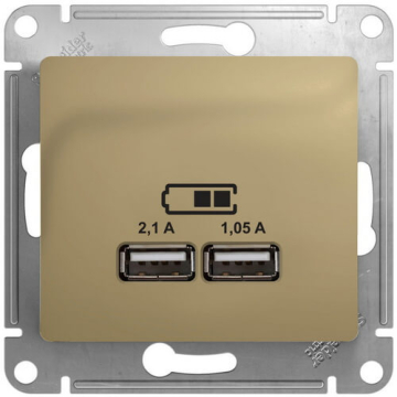 GLOSSA USB РОЗЕТКА A+A, 5В/2,1А, 2х5В/1,05А, механизм, ТИТАН