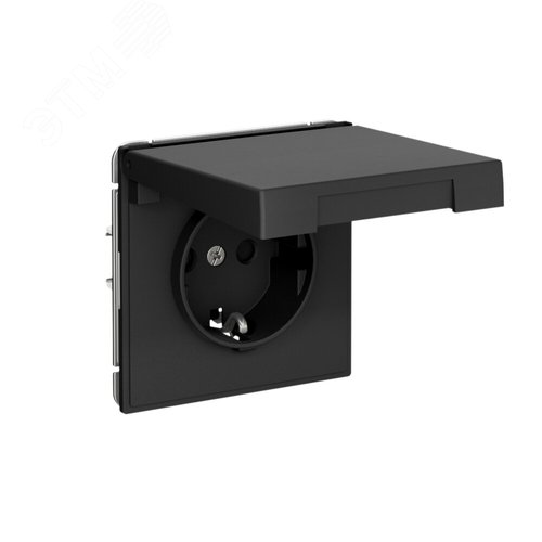 ARTGALLERY РОЗЕТКА с заз.со шт.с крышк, 16А, IP44, механизм, быстрозажим. клем., ЧЕРНЫЙ ШЕЛК