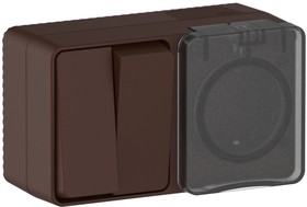 ATLASDESIGN PROFI IP54 О/У БЛОК: РОЗЕТКА с заземл. со шт., 16А, ВЫКЛЮЧАТЕЛЬ 2-клав., 10АХ, КОРИЧНЕВЫЙ