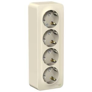 BLANCA О/У РОЗЕТКА 4-я с заземлением со шторками, ИЗОЛ.ПЛ., 16А, 250В, МОЛОЧНЫЙ